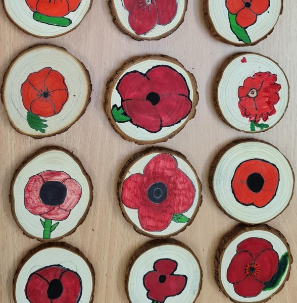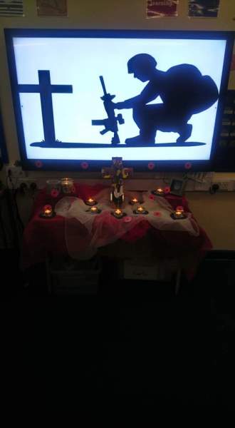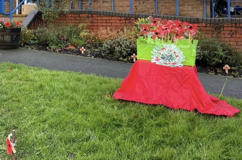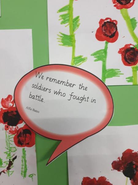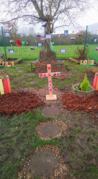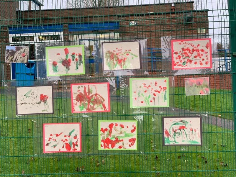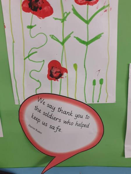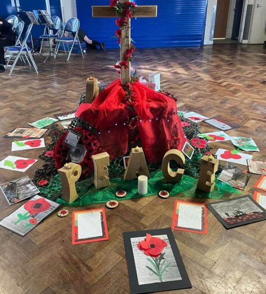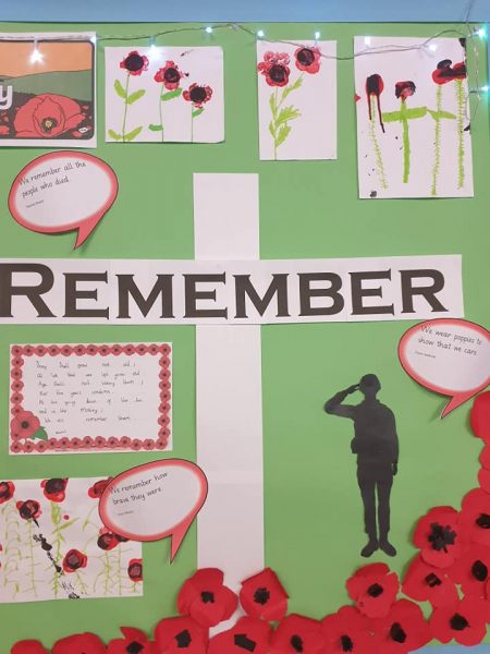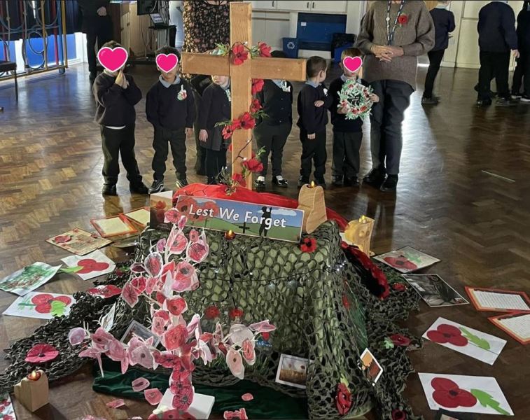 In 2021, we held an outdoor Remembrance Service outside at the front of the school and were delighted by how many friends and neighbours “joined” us on the other side of the fence, Each class brought a wreath, a big poppy or a piece of art work to place on our prayer focus. We held our silence and Mrs Kinder played the Last Post.