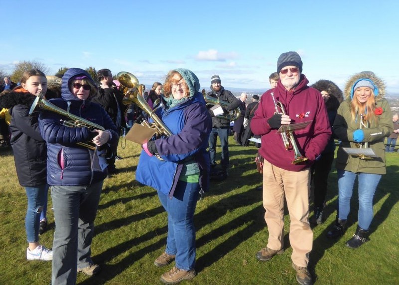 Members of Hattersley Brass Band are also honoured to be asked to play at the Remembrance Sunday Service at the Cenotaph on Werneth Low each year. In 2021 Mrs Kinder represented us and played solo.
